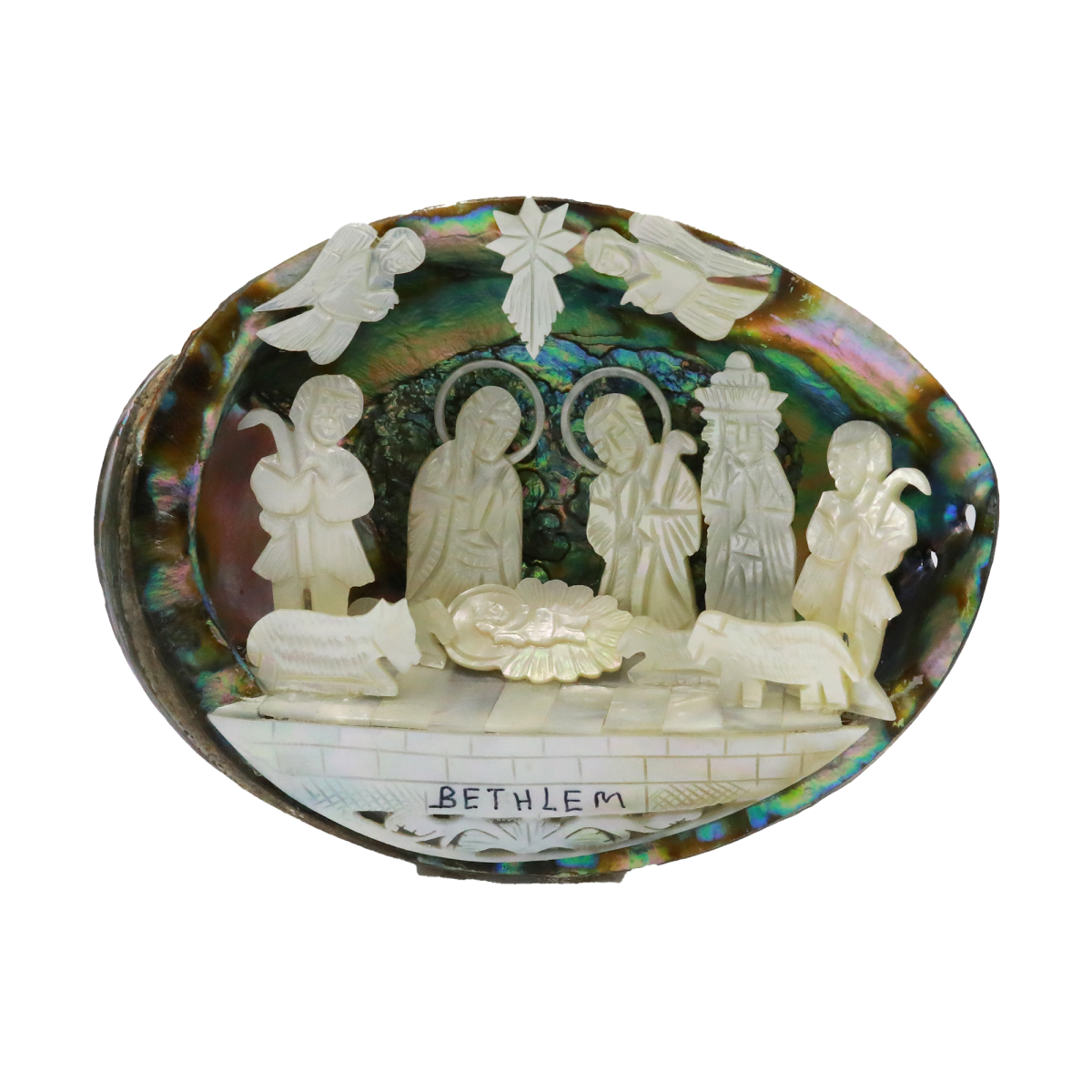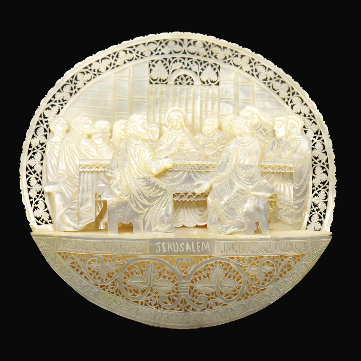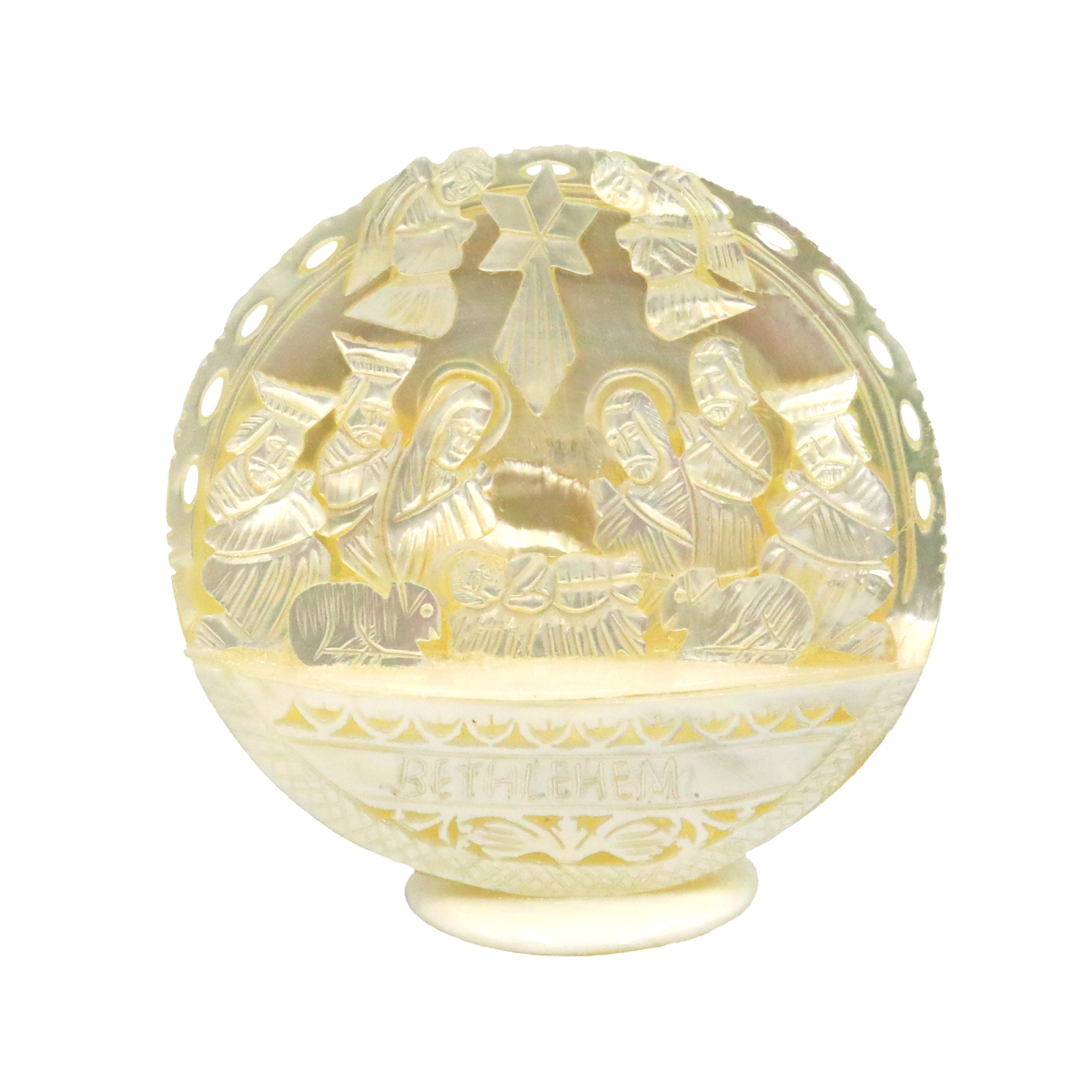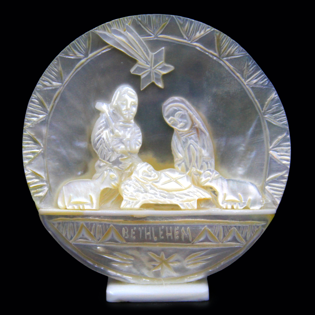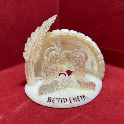 Our namesake, Father Piccirillo, was inspired by our mother-of-pearl crafting due to its unique development in Bethlehem. Mother-of-pearl first began to be used in Bethlehem in the 4th century, with the first evidence of its application in the early mosaics in the Church of the Nativity. Later, mother-of-pearl was embedded in wood pieces as an accent, casting a heavenly shine onto the massive and intricate replicas of sacred buildings that many world Christians would only ever know through these pieces of artwork when they toured around the world. Later, artists began to delicately cut into the mother-of-pearl, inking the cuts, which added dimension to their pieces. As artists became bolder and more experienced with mother-of-pearl, they began to carve it, creating dramatic scenes of the nativity story. From this evolution came the Takhreem technique, completely native to Bethlehem and found nowhere else in the world. Indeed, one can only tell the authenticity of a Bethlehem piece by the presence of this carving technique, which creates intricate designs that that frame and embellish the storytelling of each piece. This technique must be done by hand with a specialized tool, and until today cannot be replicated by any machine.